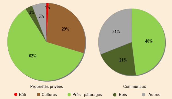 Celles à vocation pastorale sont largement prédominantes avec 62 % de la surface privée.