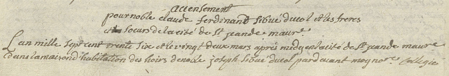 Intrigués par ce patronyme noble et le nom ou prénom douteux Chavlot, nous tentons de rechercher des informations sur ces personnes dans les registres du tabellion de Saint‑Jean-de‑Maurienne.