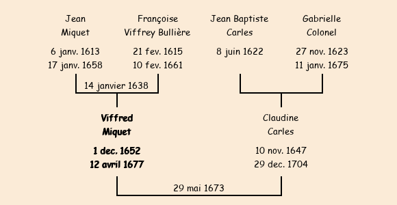 Marié (20 ans) avec Claudine Carles (25 ans) le 29 mai 1673 à Fontcouverte ![]() |