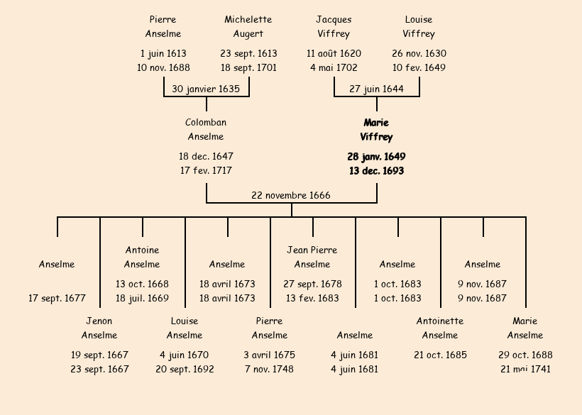 Mariée (17 ans) avec Colomban Anselme (18 ans) le 22 novembre 1666 à Fontcouverte ![]() |