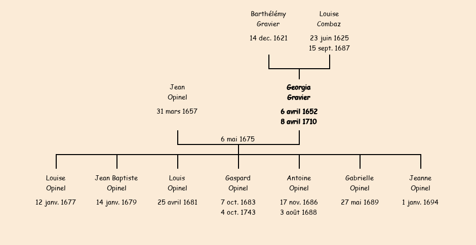 Mariée (23 ans) avec Jean Opinel (18 ans) le 6 mai 1675 à Fontcouverte ![]() |