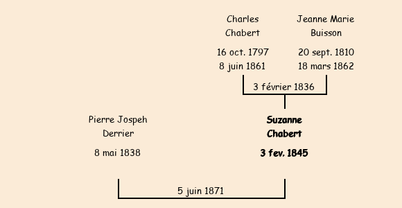Mariée (26 ans) avec Pierre Jospeh Derrier (33 ans) le 5 juin 1871 à Saint-Pancrace |