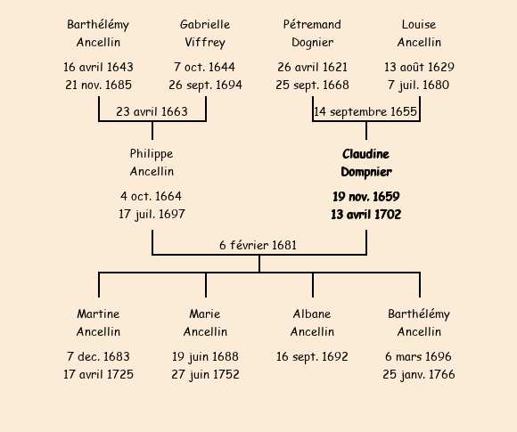 Mariée (21 ans) avec Philippe Ancellin (16 ans) le 6 février 1681 à Fontcouverte ![]() |