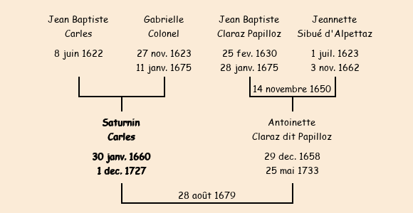 Saturnin Carles apparait dans la consigne des mâles de 1713. |