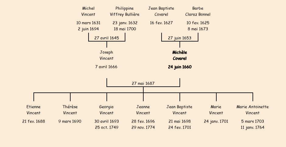 Michèle Covarel apparait dans le recensement de la population de 1716. |