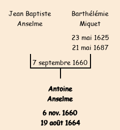 | Père : Jean Baptiste Anselmoz | Parrain : Antoine Augert (révérend) |