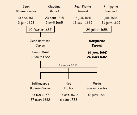 Mariée (13 ans) avec Jean Baptiste Carles (25 ans) le 12 mars 1675 à Fontcouverte |