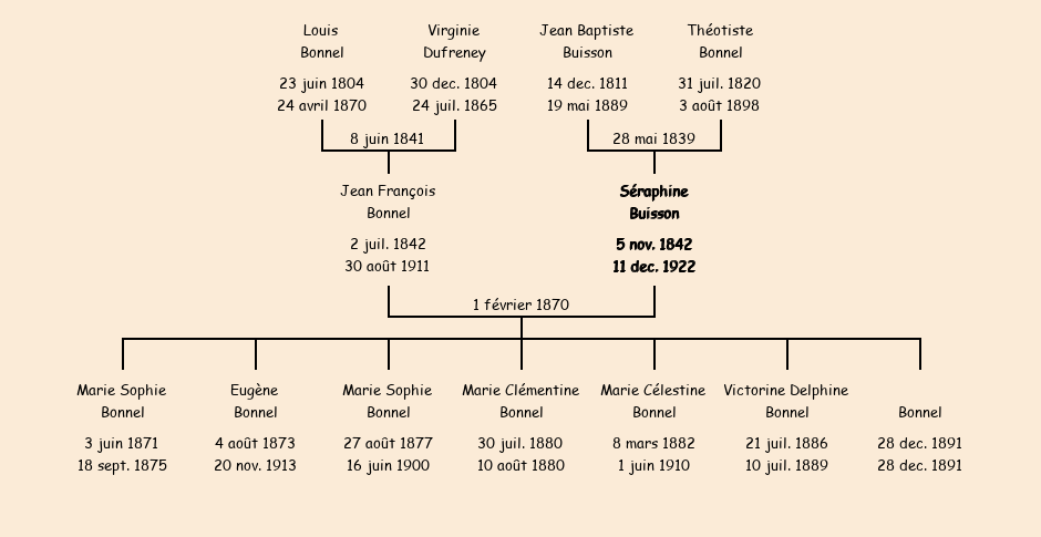 Mère : Théotiste Bonnel (ménagère) | Marraine : Florentine Buisson (ménagère) |