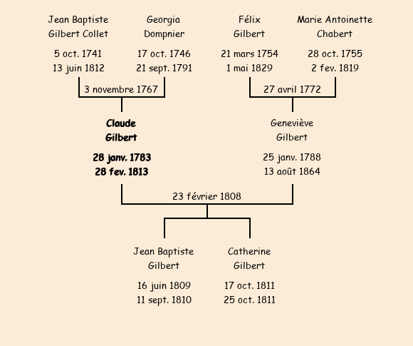 Epoux : Claude Gilbert, fils de Jean Baptiste et de feue Georgina Dompnier |