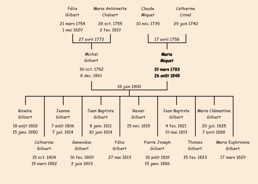 Epoux : Michel Gilbert, fils de Félix et de Marie Antoinette Chabert |