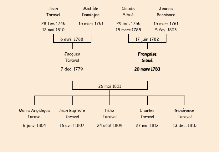 Epoux : Jacques Taravel, fils de Jean et de Michelette Dominjon |