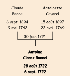 | Père : Claude Claraz Bonnel | Parrain : Antoine Claraz Bonnel (fils de Jean François décédé) |