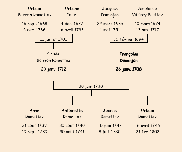Mère : Amblarde Viffrey Bouttaz | Marraine : Françoise Domenjon (fille de François) |