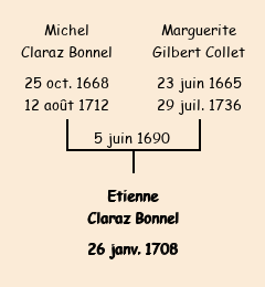 | Etienne Claraz Bonnel apparait dans la consigne des mâles de 1713. |