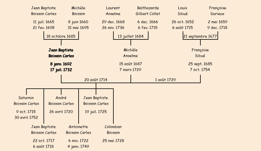 Jean Baptiste Boisson Carles apparait dans le recensement de la population de 1716. |