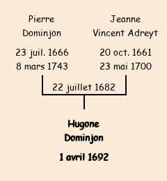 Hugone Dominjon apparait dans le recensement de la population de 1716. |