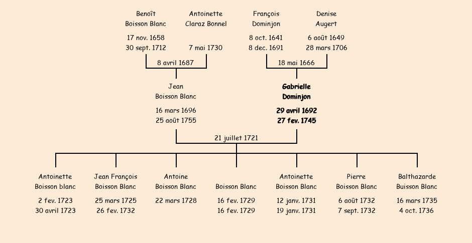 Gabrielle Dominjon apparait dans le recensement de la population de 1716. |
