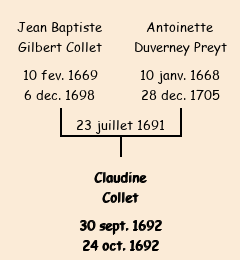 Claudine Collet apparait dans le recensement de la population de 1716. |