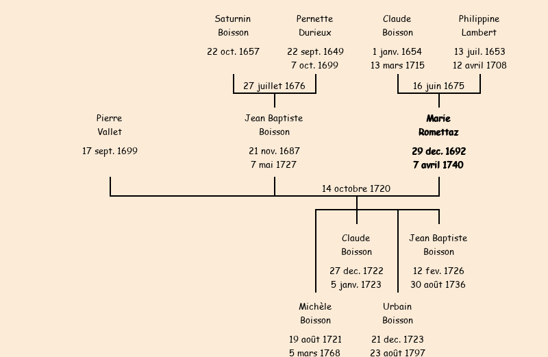 Epouse : Marie Boisson Romettaz (veuve de Pierre Valet de Saint Jean), fille de feu Claude |