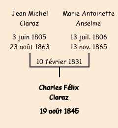 Père : Jean Michel Claraz (laboureur, a marqué et a déclaré ne pas savoir signer) | Parrain : Alexis Claraz (laboureur) |