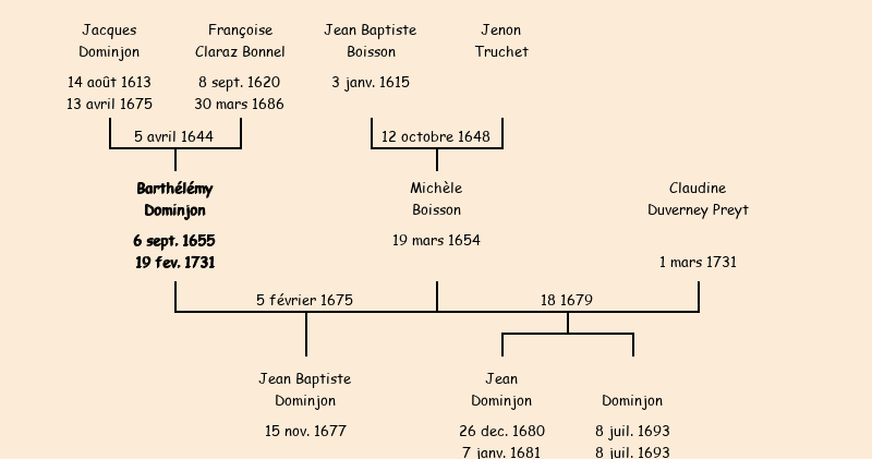 Barthélémy Dominjon apparait dans le recensement de la population de 1716. |