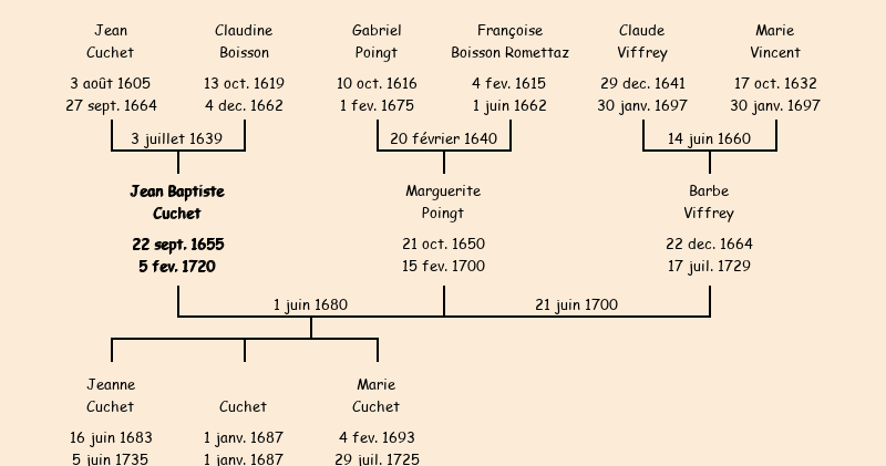 Marié (24 ans) avec Marguerite Poingt (29 ans) le 1 juin 1680 à Saint-Jean-de-Maurienne |