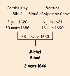 Mère : Martine | Marraine : Louise Sibué d'Alpettaz (fille de Claude) |
