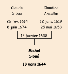 Père : Claude Sibué, fils de Jean Baptiste | Parrain : Michel Gilbert Collet (fils de Jean) |