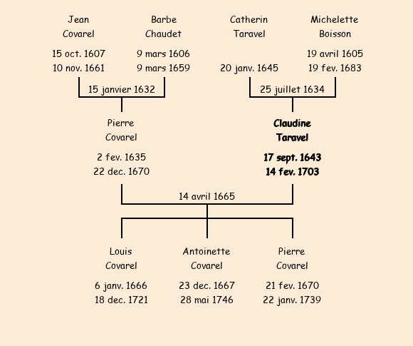 Mariée (21 ans) avec Pierre Covarel (30 ans) le 14 avril 1665 à Fontcouverte ![]() |