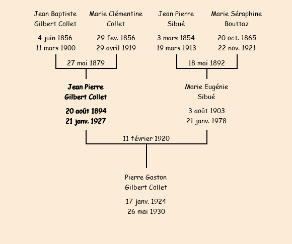 Père : Jean Baptiste Gilbert Collet, fils de Clément (cultivateur à L'Alpettaz, 39 ans) | Parrain : - |