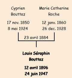 | Père : Cyprien Bouttaz, fils de Clément (cultivateur à La Bettaz, 46 ans) | Parrain : - |