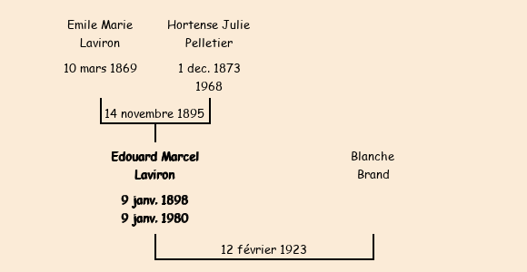 Père : Emile Laviron, fils de Charles (garde forestier au Crêt, 28 ans, né à Domjulien canton de Vitel Vosges) | Parrain : - |