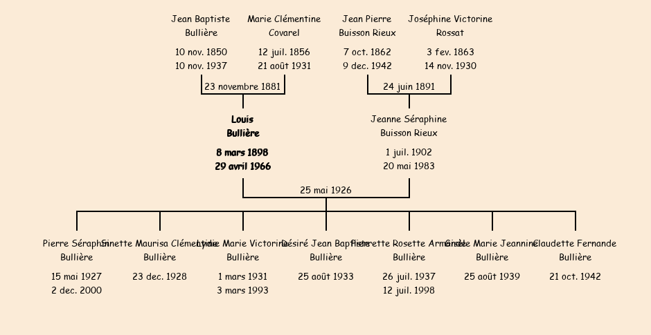 Epouse : Jeanne Séraphine Buisson (23 ans, née à Fontcouverte le 1er juillet1902, de L'Alpettaz), fille de Jean Pierre et de Victorine Rossat |