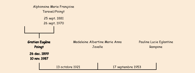 Mère : Alphonsine Poingt, fille de Clément (cultivatrice à La Brévière,18 ans, fille du déclarant et de Florentine Taravel cultivatrice) | Marraine : - |