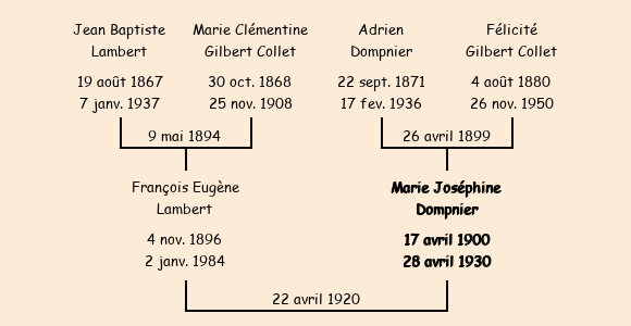 Mariée (20 ans) avec François Eugène Lambert (23 ans) le 22 avril 1920 à Fontcouverte |