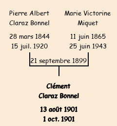 Père : Pierre Claraz Bonnel (57 ans né et domicilié à la Bise) |