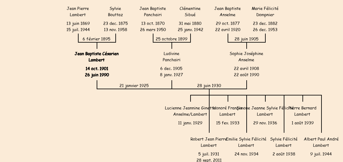 Epoux : Jean Baptiste Césarien Lambert (28 ans, né à Fontcouverte le 14 octobre1901, veuf de Ludivine Panchairi), fils de Jean Pierre et de Sylvie Bouttaz |