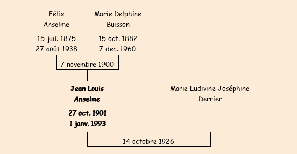 Epouse : Marie Ludivine Joséphine Derrier (23 ans, née à Saint Pancrace le 16 avril1903, domiciliée à Saint Pancrace, hameau des Colonnes), fille de Jean Baptiste et de Rose Champlong |
