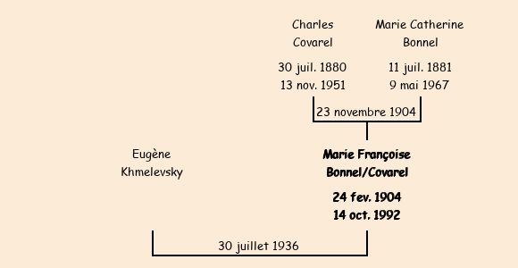 Mariée (32 ans) avec Eugène Khmelevsky le 30 juillet 1936 à Saint-Jean-de-Maurienne |