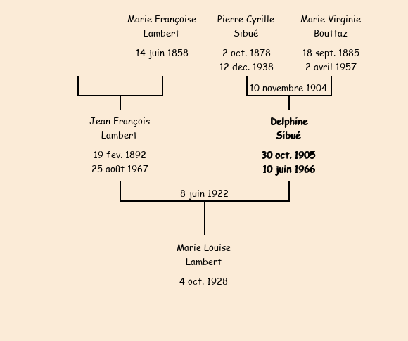 Epouse : Delphine Sibué (16 ans, née à Fontcouverte le 30 octobre1905, de La Bise), fille de Pierre Cyrille et de Marie Virginie Bouttaz |