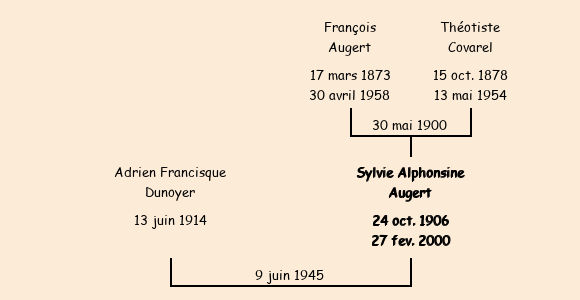 | Mariée (38 ans) avec Adrien Francisque Dunoyer (30 ans) le 9 juin 1945 à Fontcouverte |
