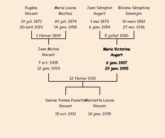 Epouse : Marie Victorine Augert (24 ans, née à Fontcouverte le 6 janvier 1907, du Villard), fille de Jean Séraphin et de Bibiane Séraphine Dominjon |