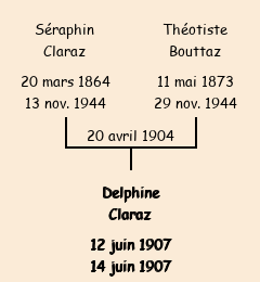 Père : Séraphin Claraz (43 ans né et domicilié au Crêt) |