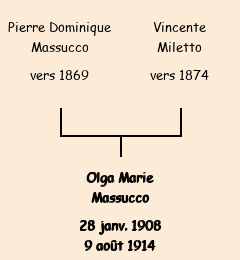 Olga Marie Massucco apparait dans le dénombrement de la population de 1911. |