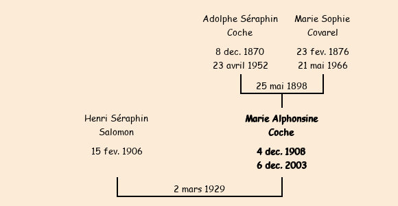 Mariée (20 ans) avec Henri Séraphin Salomon (23 ans) le 2 mars 1929 à Fontcouverte |