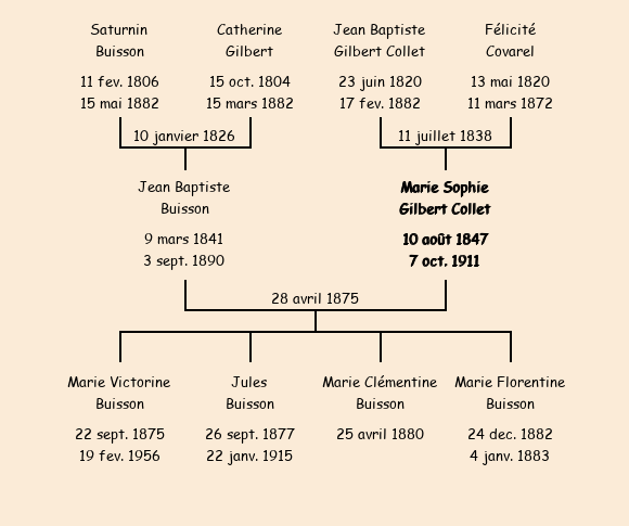 Mère : Félicité Covarel | Marraine : Sophie Gilbert Collet (cultivatrice) |