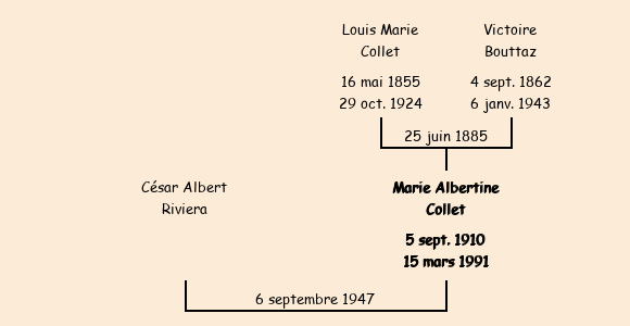 Mariée (37 ans) avec César Albert Riviera le 6 septembre 1947 à Saint-Jean-de-Maurienne |