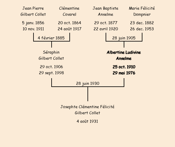 Mariée (19 ans) avec Séraphin Gilbert Collet (23 ans) le 28 juin 1930 à Fontcouverte |