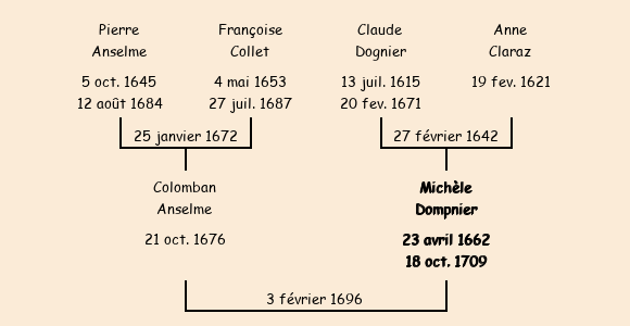 Epoux : Colomban Anselme, fils de feu Pierre |