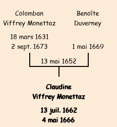 Mère : Benoîte | Marraine : Claudine Viffrey Monettaz (fille du dit Viffrey Monettaz) |